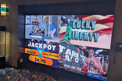 A més, JCM va instal·lar una vibrant pantalla de vídeo LED d'1.875 mm amb una solució de senyalització digital (DSS) a prop de l'entrada del casino. Aquesta pantalla s'utilitzarà de diverses maneres per millorar l'experiència dels clients, com ara mostrar transmissions de televisió en directe, contingut promocional de la propietat i anuncis recents de jackpot.